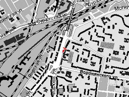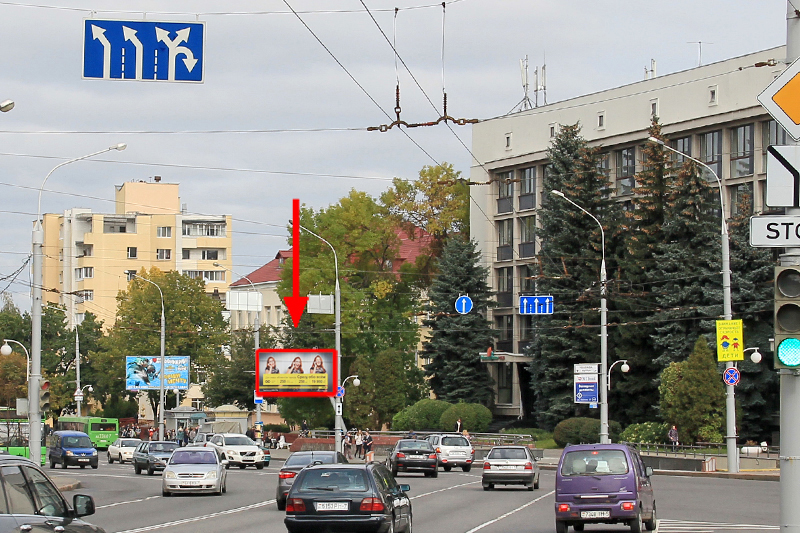 Конструкция охватывает транспортный поток, следующий к пр-ту Независимости. Рядом находятся средняя школа №1, Администрация Октябрьского района г.Минска, Дворец железнодорожников, БПС-Сбербанк.