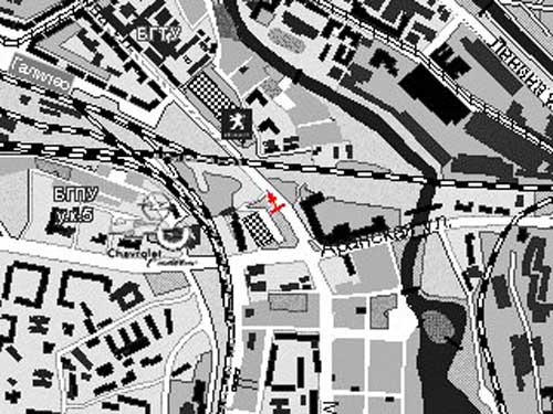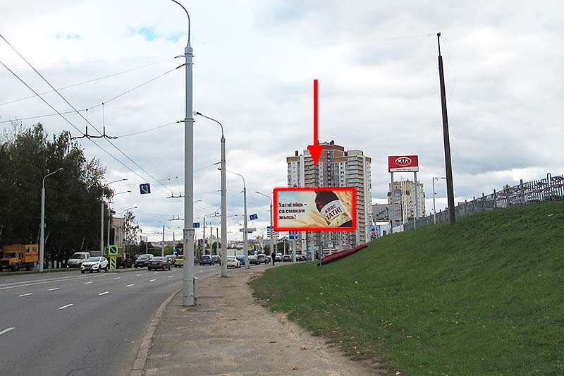 Конструкция находится в пределах 2го транспортного кольца, на подъезде к оживленному перекрестку. Рядом находятся СТО автоцентр Маяк, Автосалон Автотрейдер, Лифан Минск, АЗС Белнефтехим, РУП Белмедпрепараты. Недалеко — автоцентр Пежо.