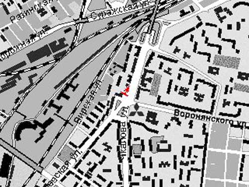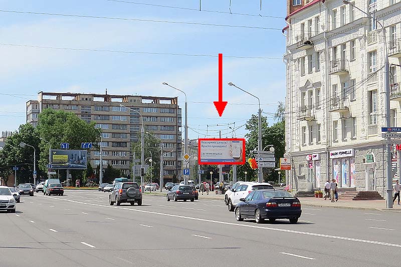 Конструкция установлена на оживленном перекрестке в центре города, охватывает транспортный поток, следующий по направлению к ул. Аэродромной. Рядом находится Дворец культуры и спорта железнодорожников, гостиница Спутник, БПС-Сбербанк ЦБУ №701.