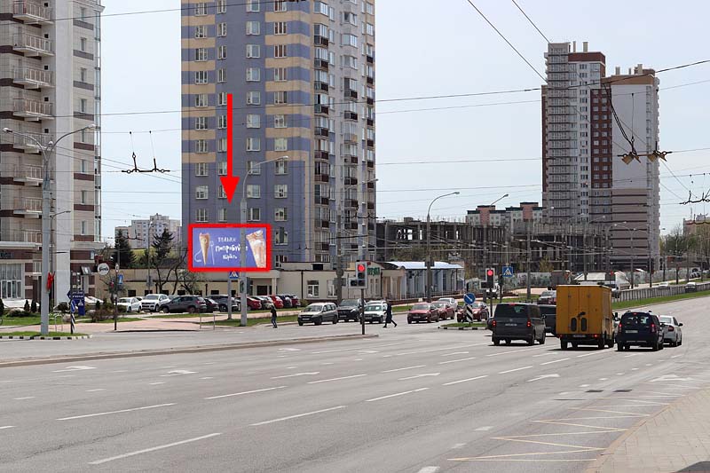 Рядом с конструкцией расположены отделение "Белгазпромбанк", аптека, пиццерия, страховые компании Кентавр и Белросстрах.