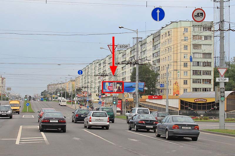 Конструкция находится возле крупнейшего перекрёстка ул. Притыцкого и пр. Пушкина. В непосредственной близости ст.м. Пушкинская, рестораны быстрого питания McDonald’s, Burger King, пиццерия Sbarro. Недалеко расположены магазин Цветы, Богатырь, Вероника и Автозапчасти; аптеки, Белтелеком, Белгазпромбанк. гостиничный комплекс Орбита, ночной клуб Лагуна, казино У Адмирала, Ледовый Дворец спорта, хореографическая гимназия-колледж, кинотеатр Аврора, ТЦ Раковский Кирмаш.