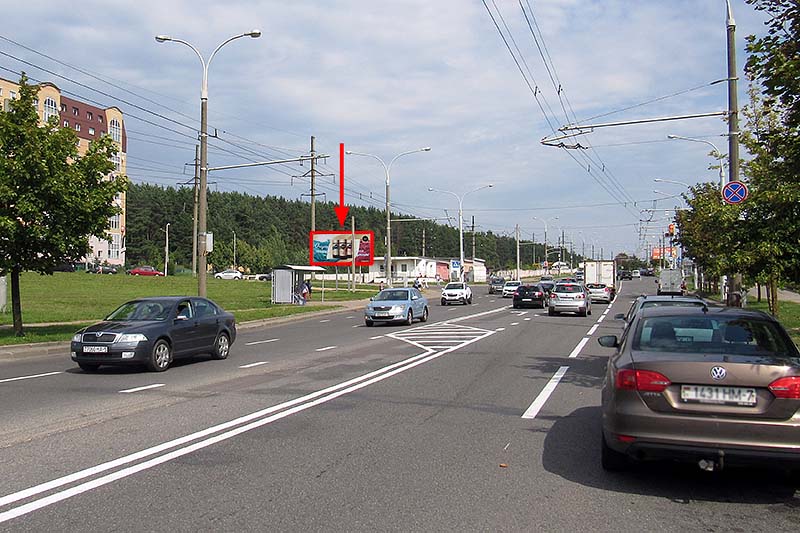 Конструкция расположена на перекрестке улиц Гинтовта-Лопатина-Ложинская, по направлению движения к стройрынку Уручье. Напротив — ТЦ "Дмитриев Кирмаш" (супермаркет «Евроопт», "Электросила", "Буслик"). В районе также расположены магазин Mart Inn и Белинвестбанк, поликлиника №28, жилой комплекс «Вивальди», гипермаркет ГИППО.