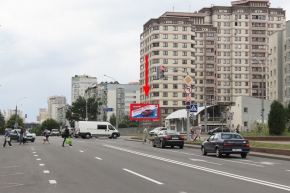 Конструкция расположена на оживленном перекрестке ул. Бурдейного и ул. Якубовского по направлению к ул. Лобанка, полностью просматривается с остановки общественного транспорта, расположенного через дорогу. Так же напротив конструкции расположен рынок Западный, торговый центр "Топ", детский развлекательный центр "Лимпомпо", недалеко универсам Евроопт, пиццерия, почтовое отделение, аптеки, Поликлиника №31, стоматологическое отделение, АСЗ Лукойл.